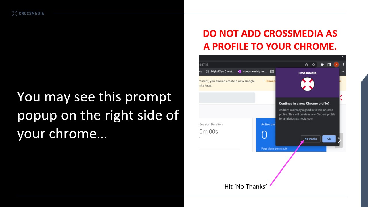 All new Crossmedians on Account and Marketplace teams are asked to tether their Crossmedia email to google to gain access to Google Marketing Platform (GMP), which houses the ad server, DSP and search platforms. To do so, these new Crossmedians are ...