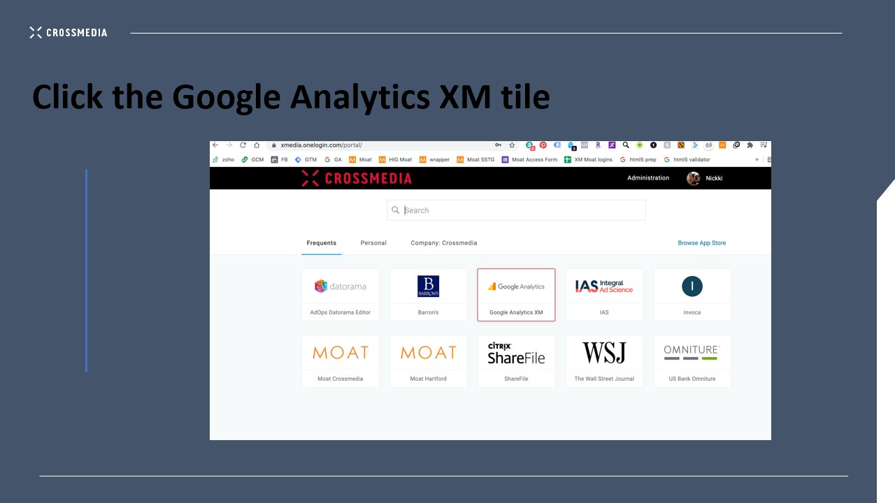 If a brand has given access to their Adobe Analytics to analytics@xmedia.com, you will need to access it via Onelogin. is the tile to click to get started. If you do not see this tile in your onelogin, please email IT helpdesk and cc Nickki DuBan ...