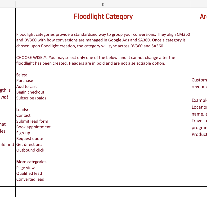 Google has introduced a required update to CM360 floodlights with new floodlight “categories”. These categories are now required for all new floodlights created in CM360.