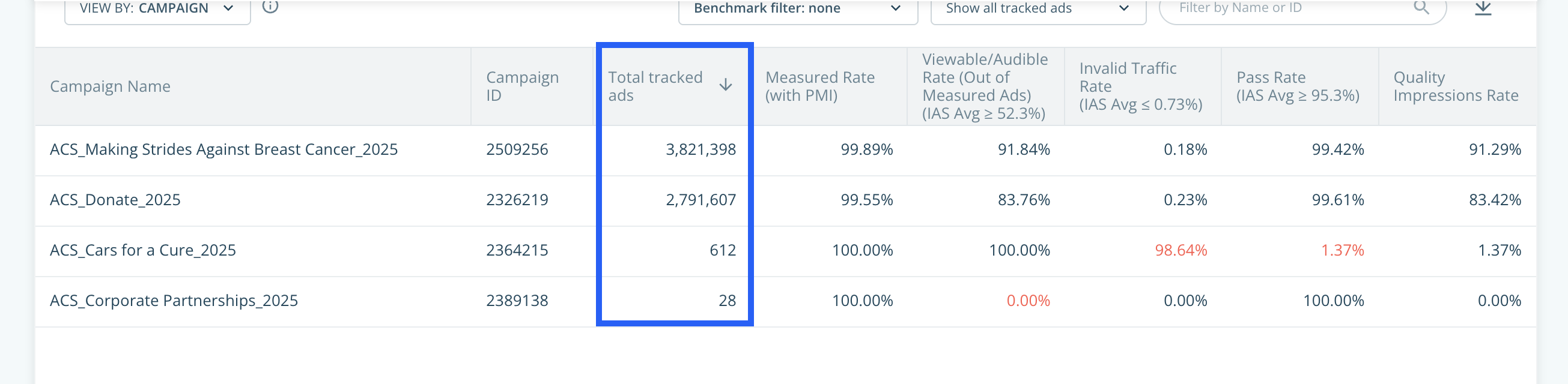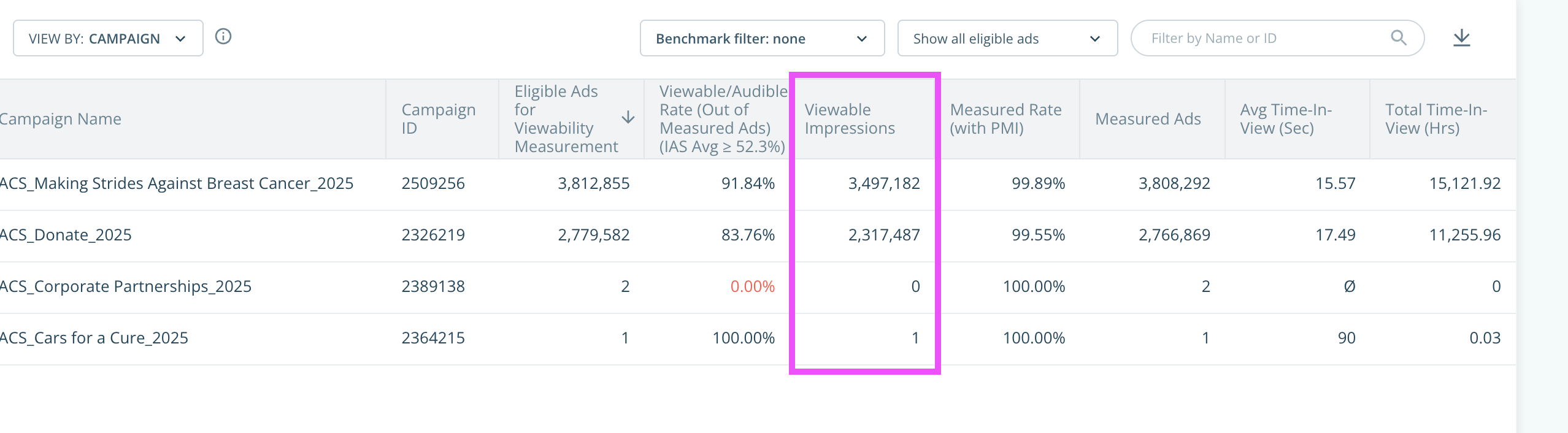 dashboard >viewability> scroll down to the grid. look for the column that is outlined in pink below: